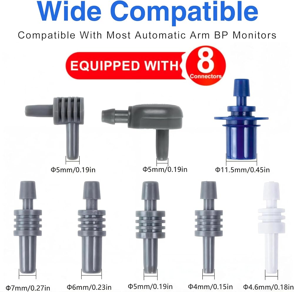 Wide Compatable :Blood pressure cuff upper arm comes with 8 connectors. Replacement Small cuff is suitable for most brands blood pressure monitor .8 connectors are easy to replace (8kinds of extra joint 0.15"/0.18"/0.19"/0.23"/0.27"0.45")