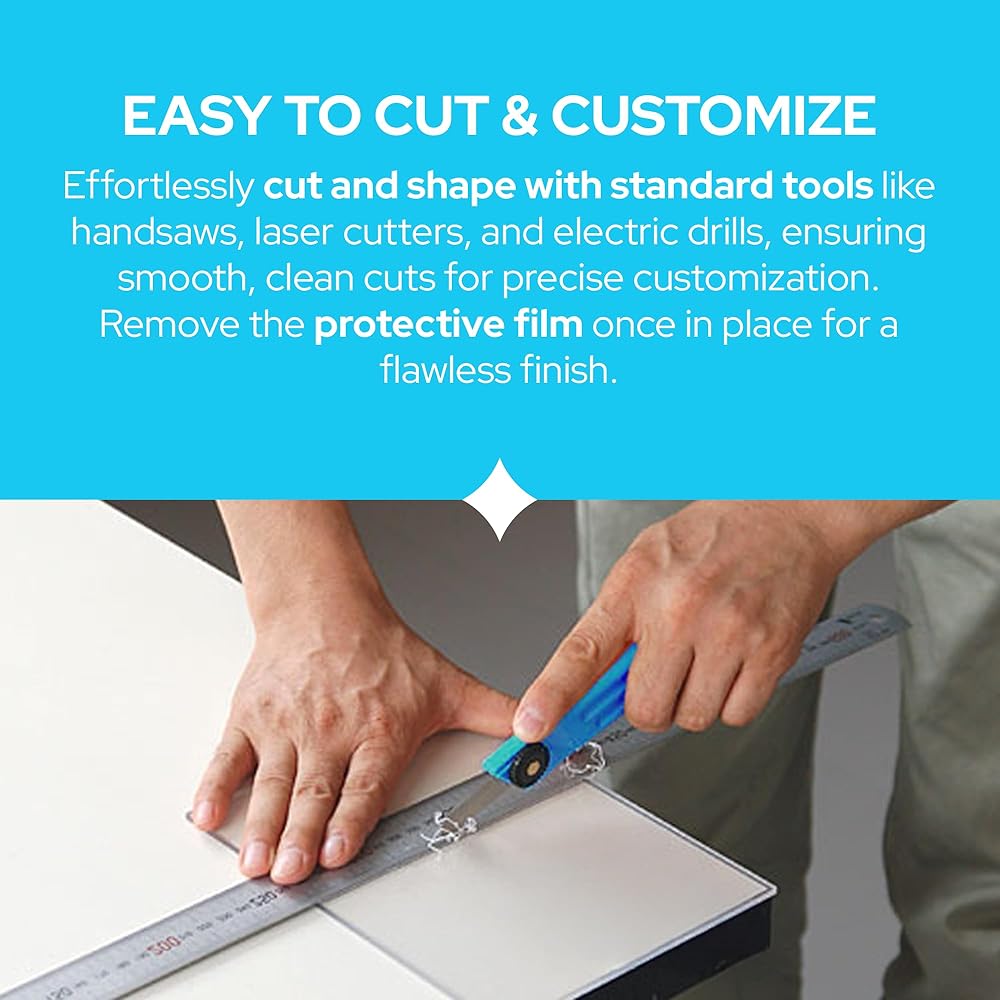 VERSATILE SHEETS: Easily cut, sawed, drilled, routed, laser cut, painted, silkscreened, formed and fabricated for whatever you need for your project.