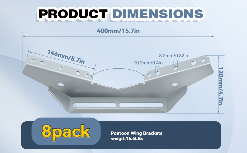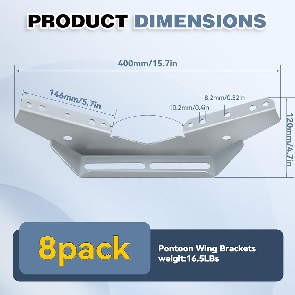 The pontoon V-wing bracket is suitable for various board widths. If you want to DIY a trailer rack, this is a good choice and can save you money. Each pack is 7.5 kg. The V-wing design can fix one board slide on each side and ensure stability and strength.