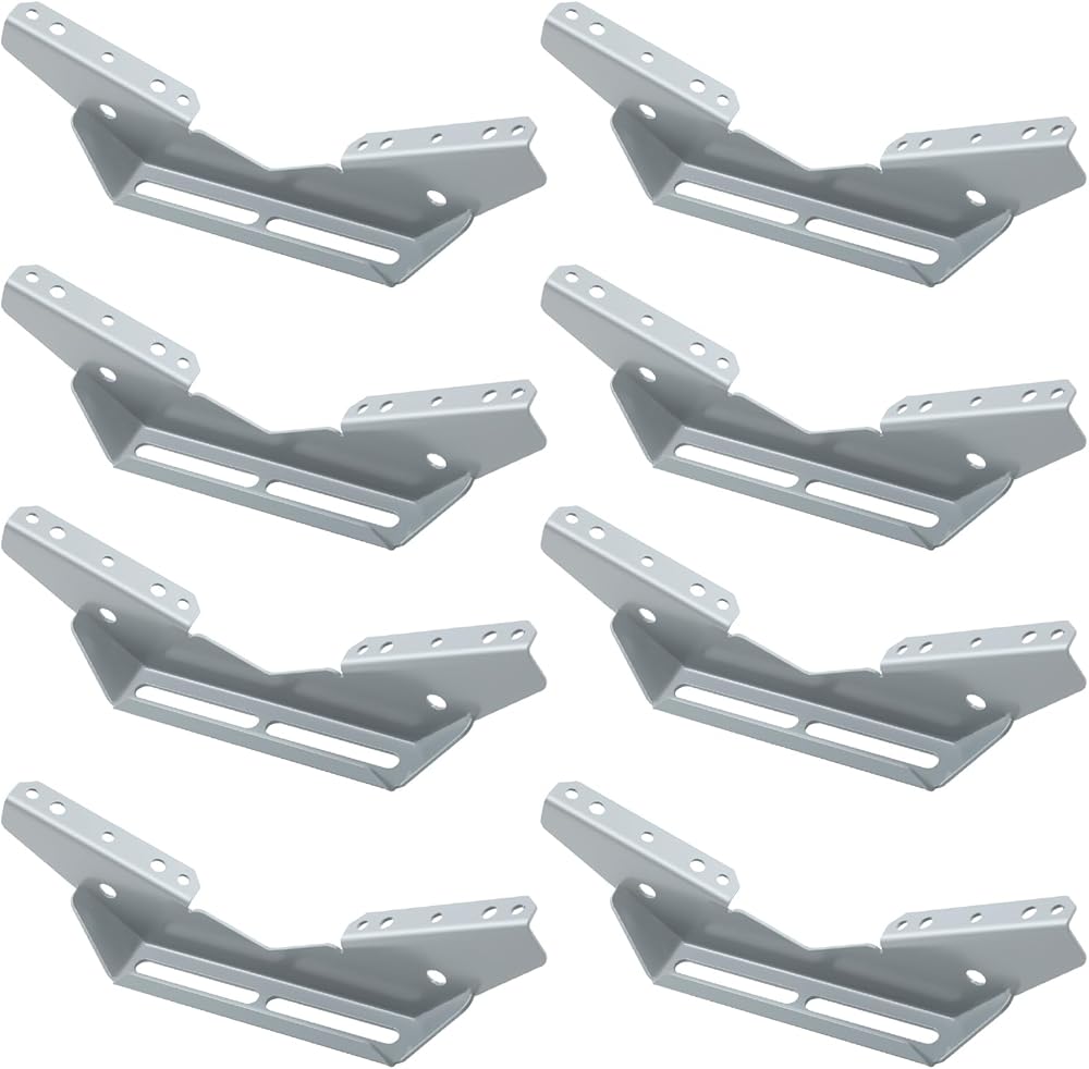 The material is high-quality heavy-duty steel with corrosion-resistant powder coating. It adopts wing-shaped design with 130° angle. The wing-shaped flanges have pre-drilled screw holes. The size of each bracket wing flange is approximately 5.75 inches x 1 inch-8Pack