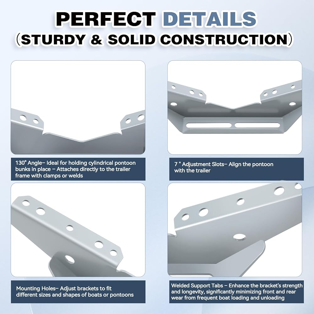Mount the pontoon wing brackets onto the frame beam to provide optimal support and load capacity for you boat trailer , ensuring enhanced safety and stability