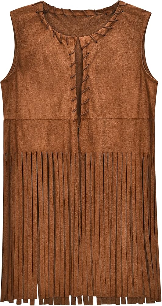 Hippie fringe vest and 70s bell bottom pants are great outfits addition for a hippie theme party