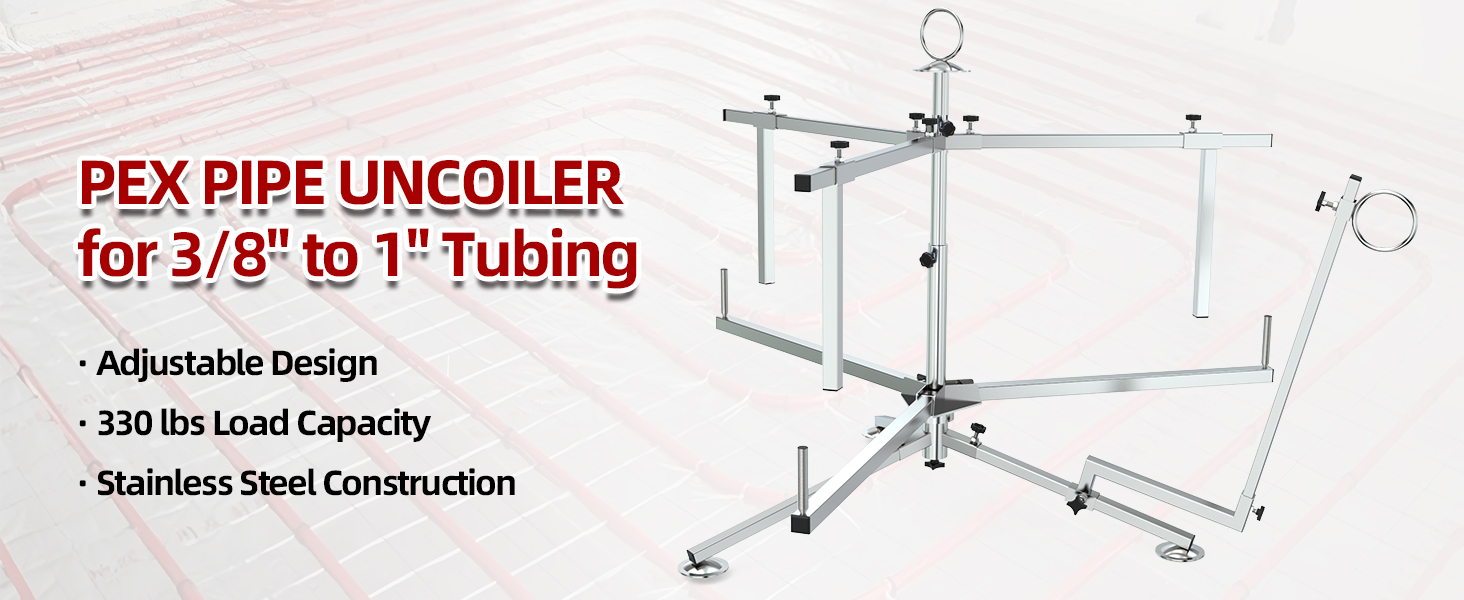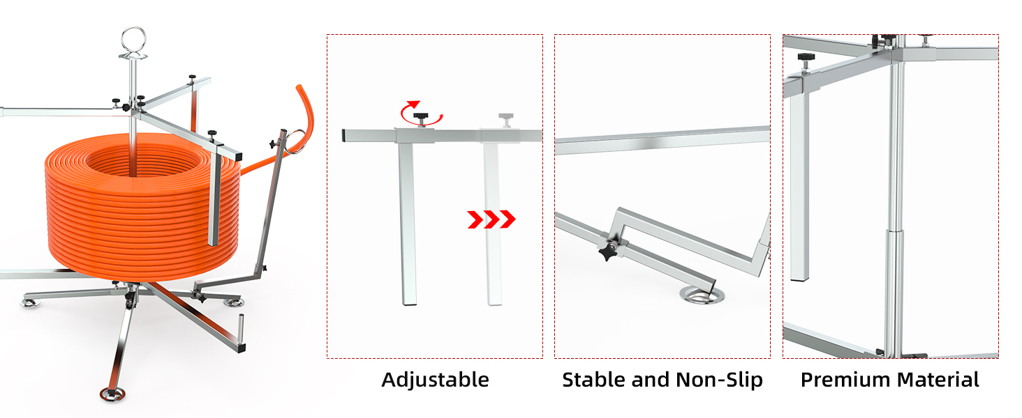 【HEAVY-DUTY 330 LB CAPACITY】The PEX pipe uncoiler supports 330 lb loads with reinforced tripod base and non-slip feet. Double-bearing system ensures smooth operation under heavy PEX tubing coils, preventing tipping during professional plumbing and radiant heating applications.
