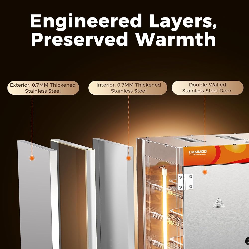 ULTRA-DURABLE & FOOD-SAFE CONSTRUCTION: The catering food warmers built with 2*0.7mm double-layer stainless steel and vacuum insulation, double walled stainless steel door for superior heat retention. Exceeds industry standards with corrosion-resistant, food-grade materials—built to withstand rigorous commercial use.