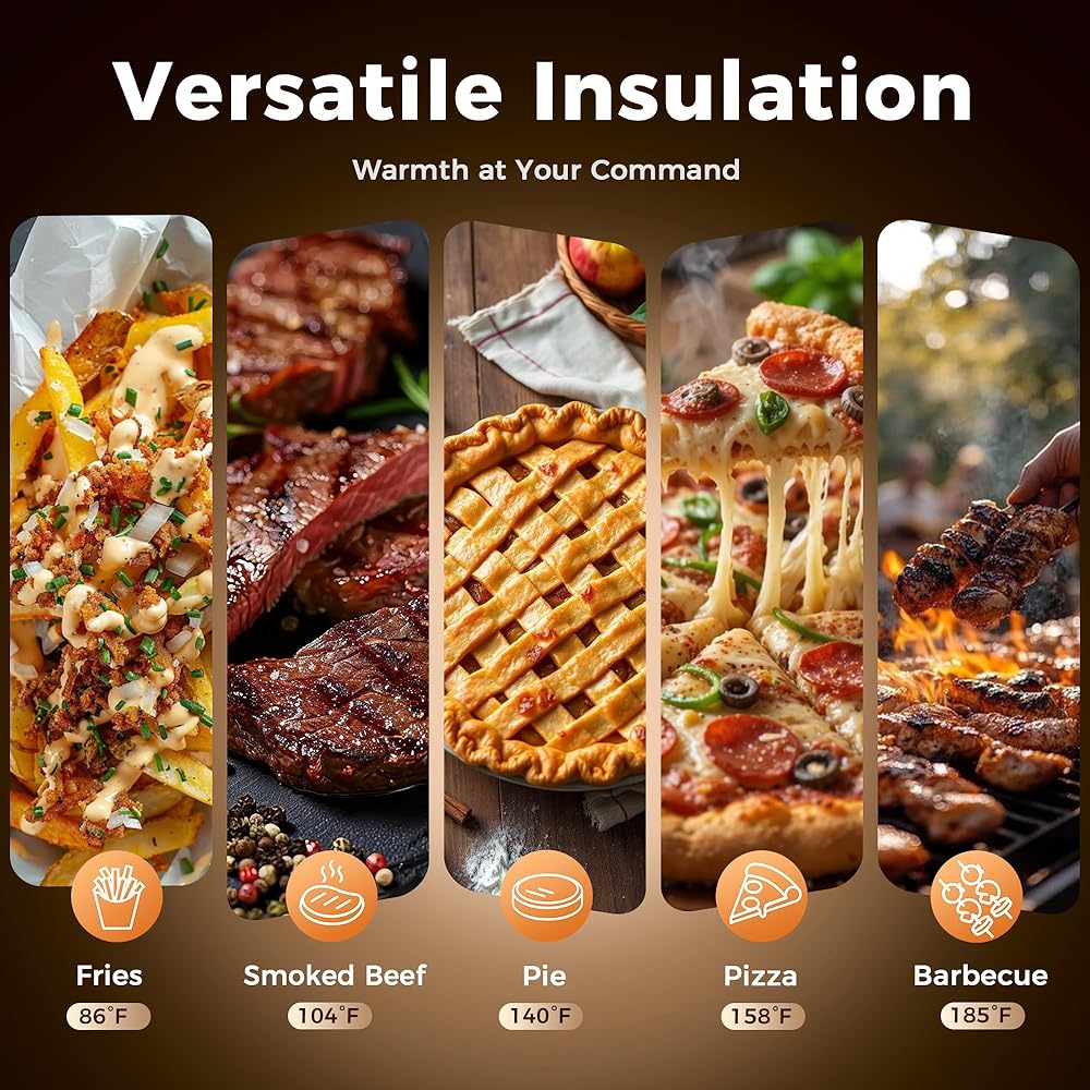 PRECISION TEMPERATURE CONTROL WITH UL/TUV SAFETY: The electric food warmers for parties buffet feature an advanced smart thermostat certified by UL/TUV (86-185°F adjustable range) with auto-shutoff and overheat protection. The 360° hot air circulation and water tray ensure even heat distribution, keeping food at perfect serving temperature while saving energy.