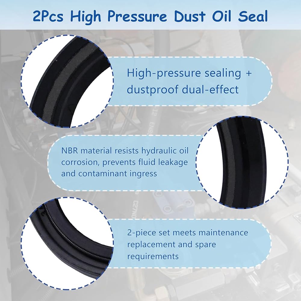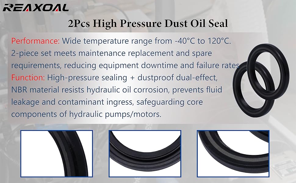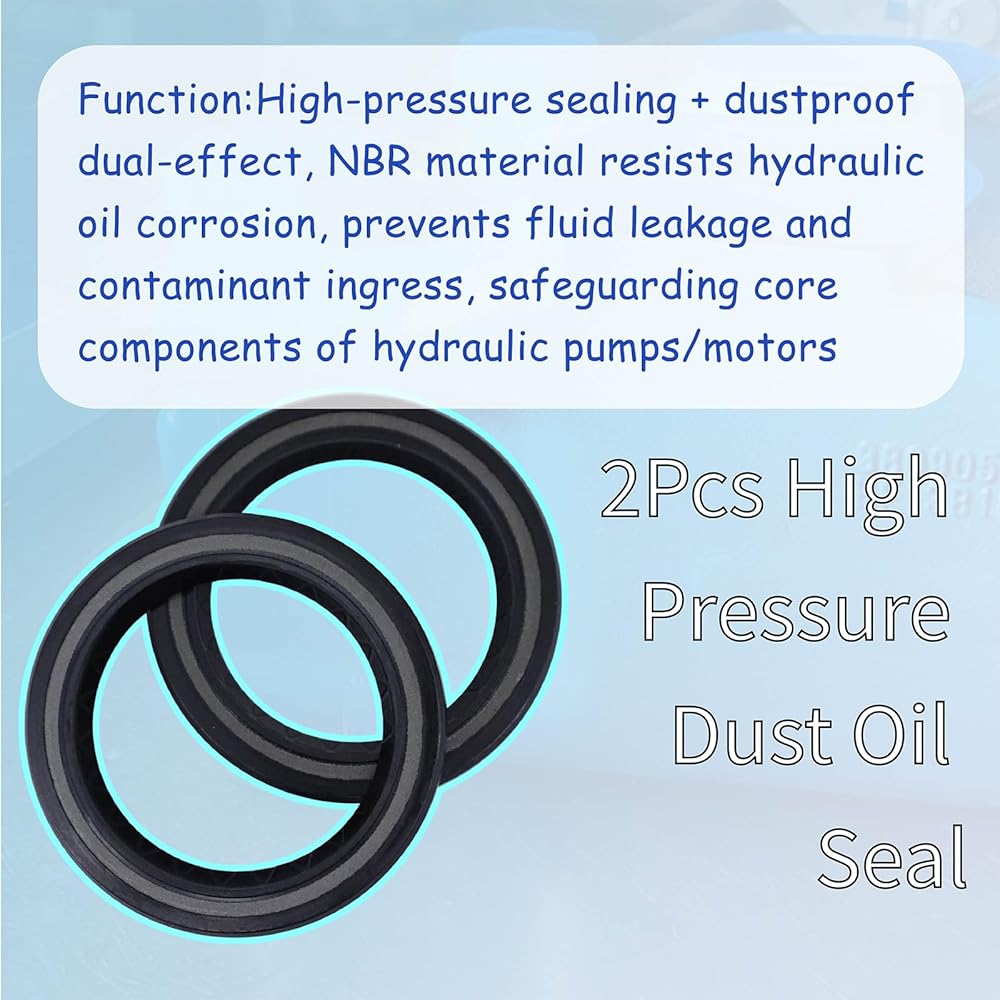 Function:High-pressure sealing + dustproof dual-effect, NBR material resists hydraulic oil corrosion, prevents fluid leakage and contaminant ingress, safeguarding core components of hydraulic pumps/motors
