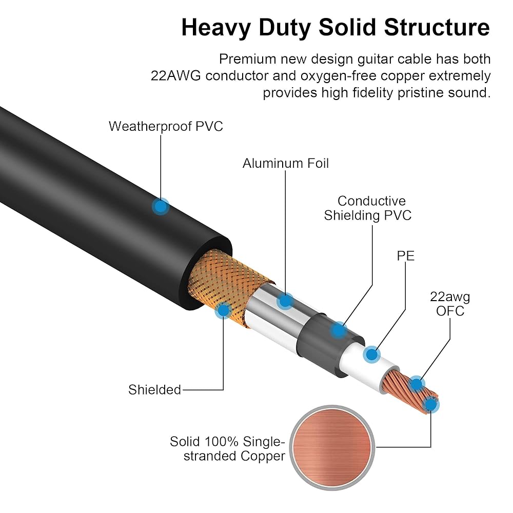 Flexible and Shielded – Playing guitar often means getting up and moving which is why our guitar cabling boasts a stronger, more durable sheath that's flexible without sacrificing shielding, so you always enjoy clear, uncolored tones.