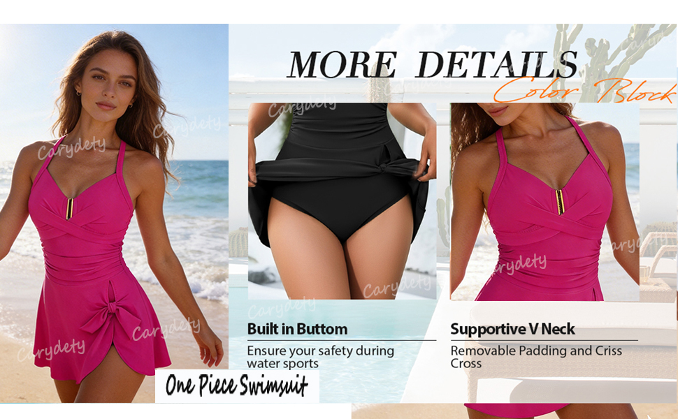 MULTIPLE COLOR OPTIONS: Womens bathing suits, Available in classic solid black, vibrant pink and black color block, and cheerful floral print to suit different style preferences. One piece swimsuit women, womens swimsuits, swim dress, bathing suit, swim suits, women's swimwear