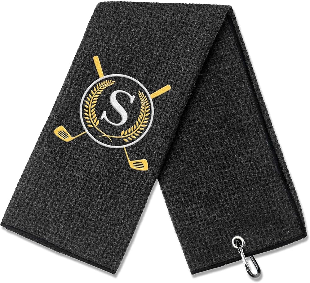 Premium Microfiber Material:Our golf towels are made of premium waffle texture microfiber with personalized gold embroidered lettering, which feels luxurious and is highly absorbent, making it easy to clean your clubs and golf balls.