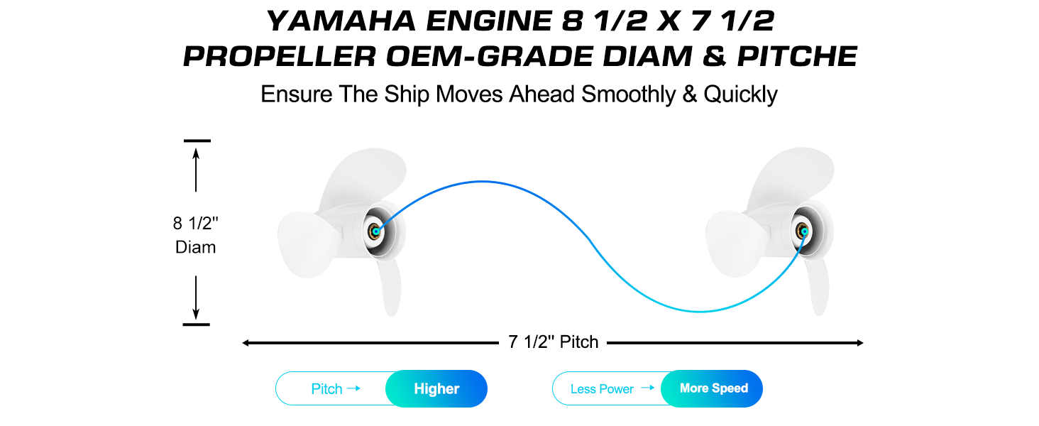 Important Size: This prop has 7 Spline Tooth; 8 1/2" Diameter x 7 1/2" Pitch; Rotation: Right; Blade:3 ; Fit Yamaha Engines 6-8 HP; Reference No.6G1-45943-00-EL; Please kindly check it.Make sure it's same with your previous prop.