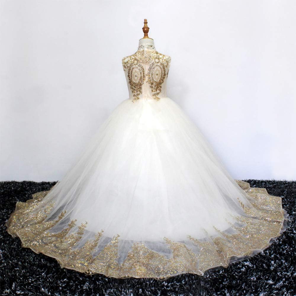 Gold Lace Flower Girls Pageant Dresses Long Puffy Prom Tulle Ball Gown