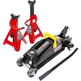 Floor jack with two jack stands kit combo. This kit includes:one 2 ton floor jack and two 2 ton jack stands. Not recommendable for Pick-Up, truck, too big SUVs etc.