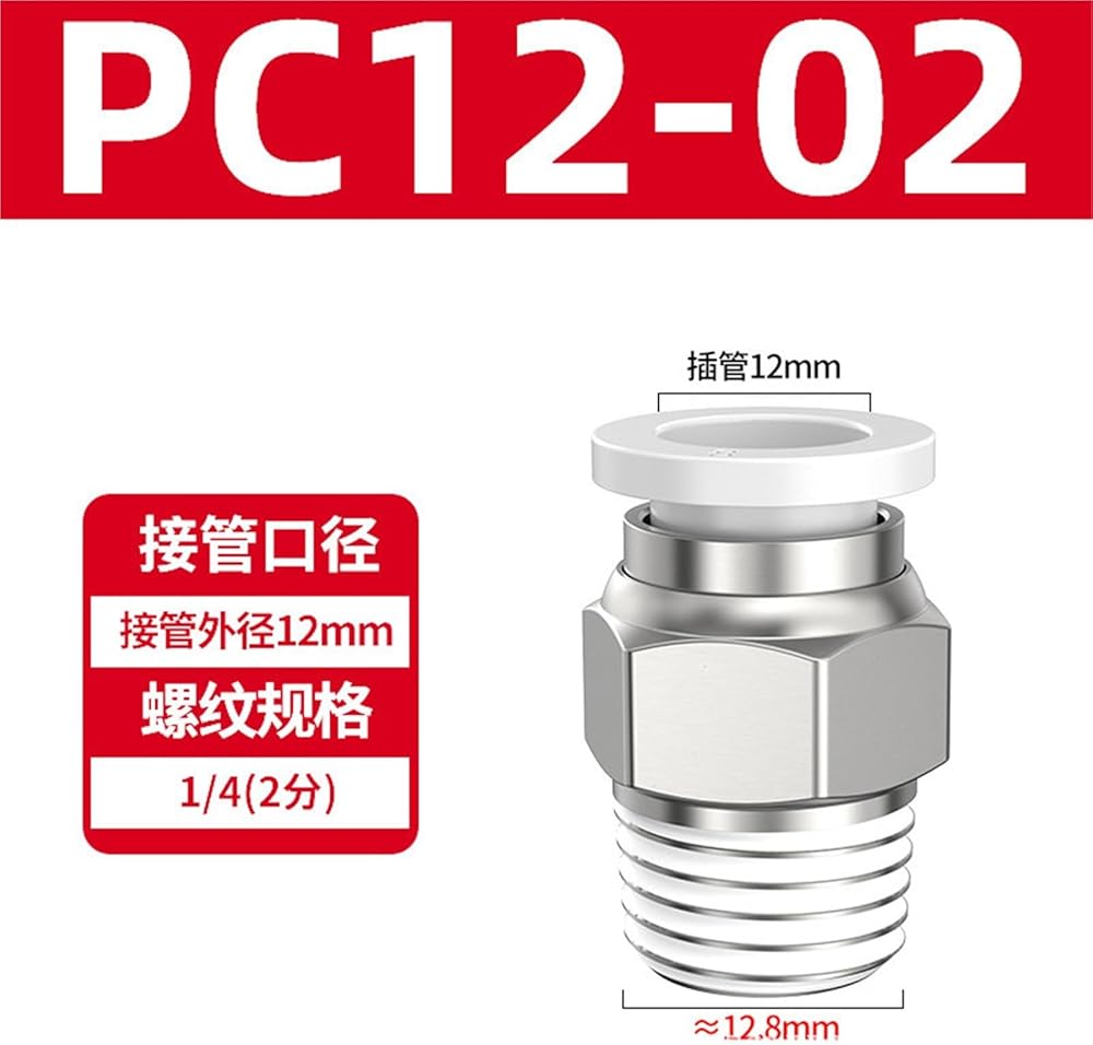 Pneumatic Copper Quick Connector Thread Straight PC4-M5 8/10-02 Trachea 6-01/12-04 Black And White 1Pcs(白色PC12-02)