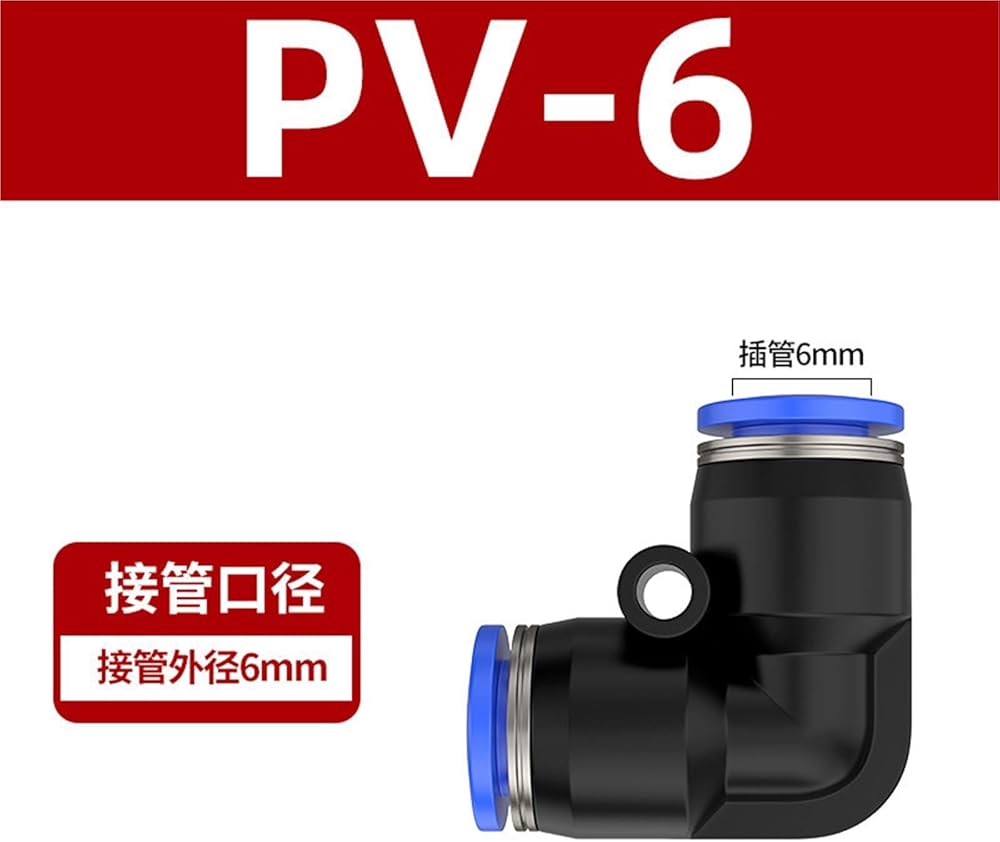 Pneumatic Air Hose Quick Connector PV4/6/8/10 Right Angle 90 Degree Plastic Elbow Bend Joint 1Pcs(蓝色PV-6)