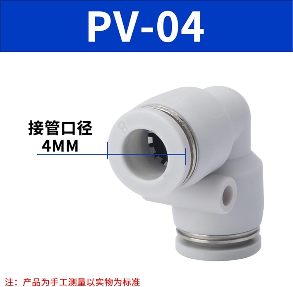PV Pneumatic Air Pipe Joint Quick Connector Right Angle 90 Degree Plastic Elbow PV-4/6/8/10/12 Black And White 1Pcs(白色PV-4(经济款))