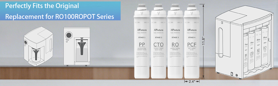 Great Fit with the Original: RO100ROPOT Series replacement filter cartridge compatible with Bluevua RO100ROPOT, RO100ROPOTUV Series models, these XFlutura filter replacement for blue vua water filter deliver a tight seal that eliminates worries about water leaks, ensuring a great fit with the original system. Please Note: The brand and model of original is only used to show compatibility