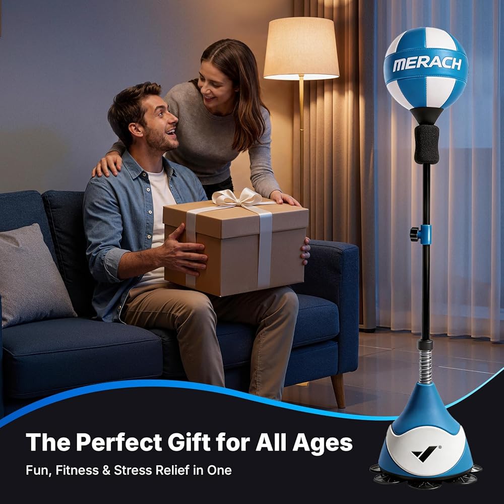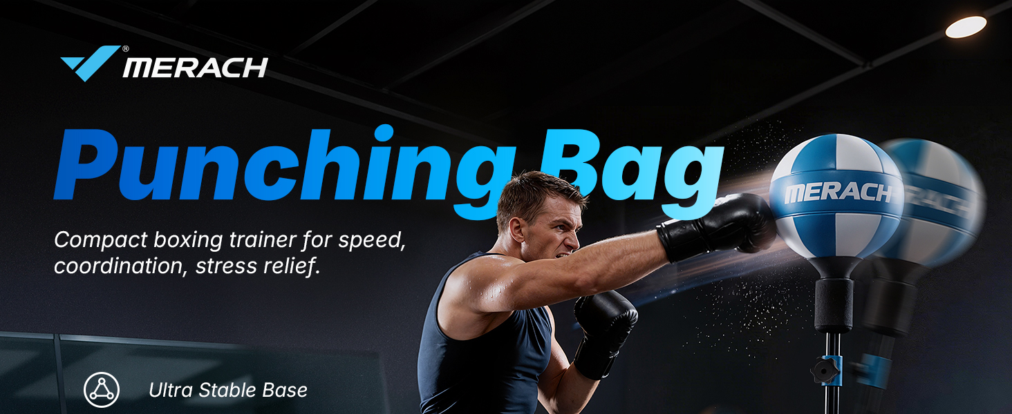 MERACH Punching Bag for Teens & Adults, Punching Bag with Stand, 53-62 Inches Height Adjustable Sand-Filled Base with Suction Cup, Boxings Equipment, Freestanding Reflex Bag Kit