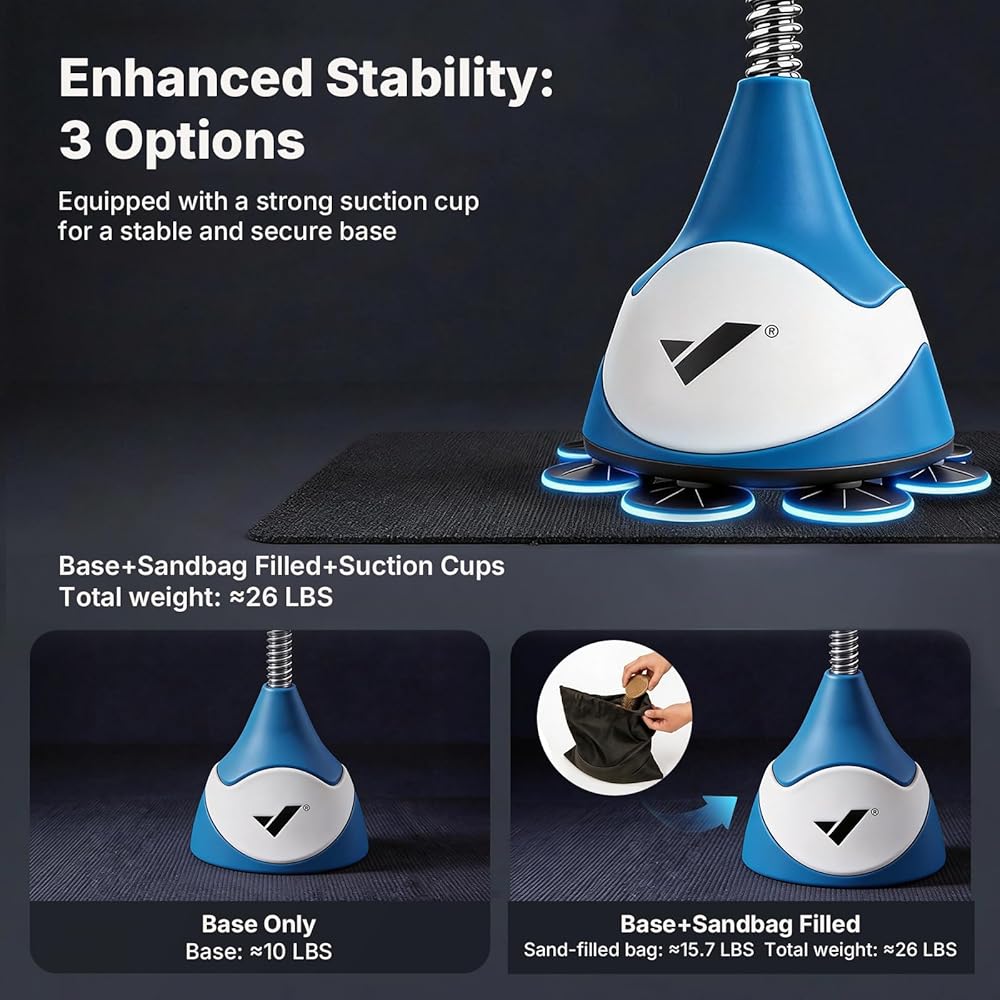 ● Dual Stabilization System: This standing punching bag features a base that supports sand filling and includes 8 powerful suction cups (85mm diameter) for a secure grip. Whether on indoor floors or outdoor hard surfaces, this punching bag with stand stays stable and won't shift, giving you a safer, more focused workout.