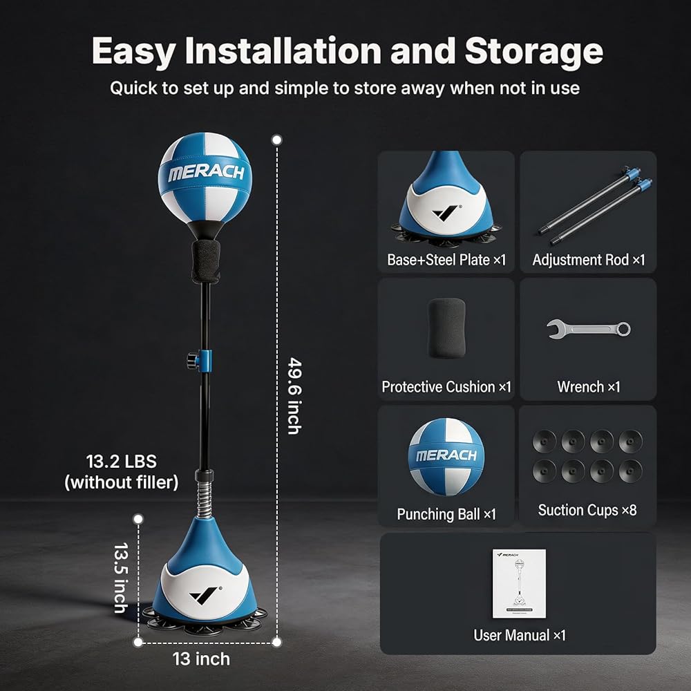 ● Easy Installation: No complicated tools are required—assembly takes just a few minutes by following the instructions. Once the base is filled, this standing punching bag stays solid and ready for action, allowing you to set up your own punching bag with stand at home anytime, without hassle.