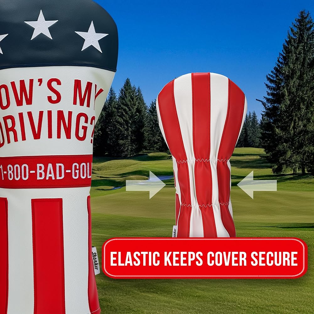 Nothing invites commentary quite like your driving. So we leaned into it. The Shanker Golf “HOW'S MY DRIVING?” headcover is a rolling billboard for bad decisions, wrapped in glorious stars-and-stripes styling. It's loud, proud, and basically guarantees at least one joke before the first tee shot. Which is good, because your swing probably will too.