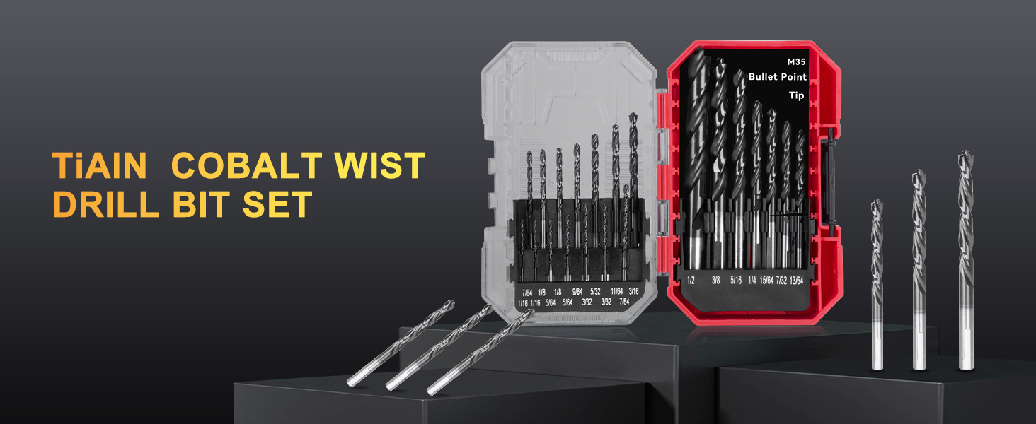 Cobalt Drill Bit Set- 21Pcs Titanium Aluminum Nitride Coated (TiAlN) with Bullet Point Tip M35 High Speed Steel Twist Jobber Length for Hardened Metal, Stainless Steel etc1/16-1/2"