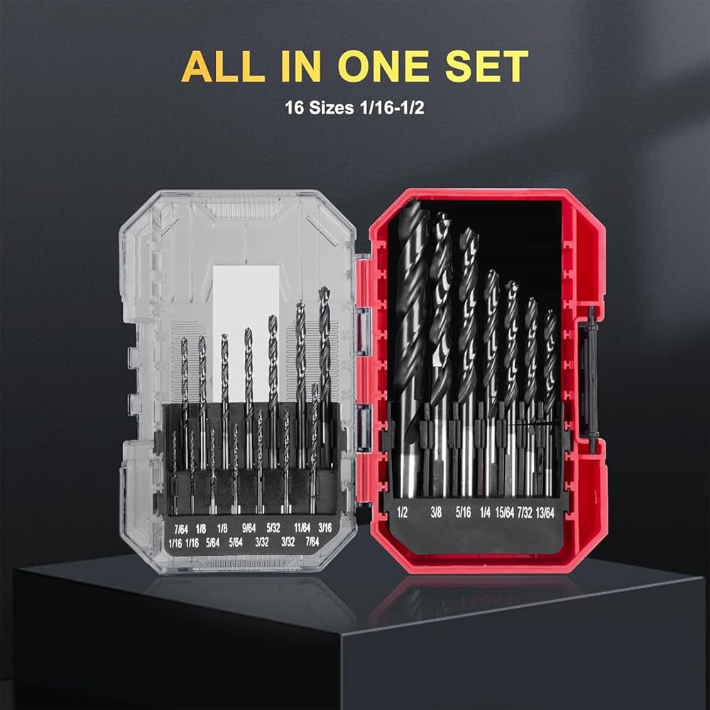 21-Piece M35 Drill Bit Set - Includes: 1/16" x 2, 5/64" x 2, 3/32" x 2, 7/64" x 2, 1/8" x 2, 9/64" x 1, 5/32" x 1, 11/64" x 1, 3/16" x 1, 13/64" x 1, 7/32" x 1, 15/64" x 1, 1/4 x 1, 5/16" x 1, 3/8" x 1, 1/2" x 1.Fully meet your daily drilling needs