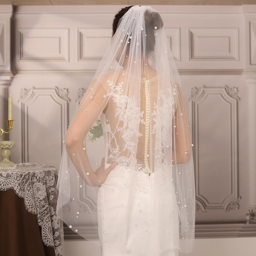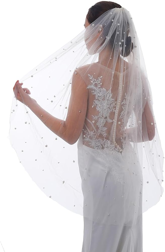 Pearl bridal veils with metal comb is made of airy soft tulle that's luxurious to touch yet understated in it's own elegance,easy and comfortable to wear.