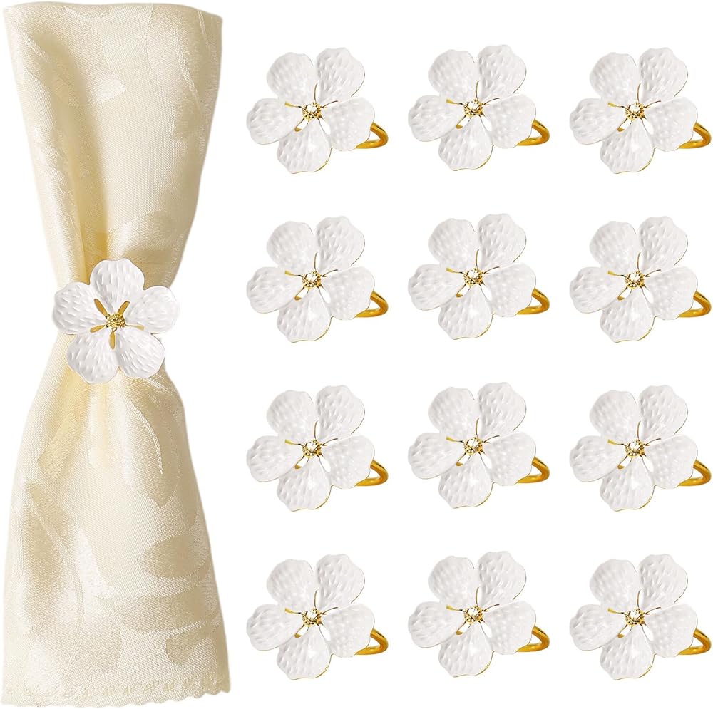 White Flower Napkin Rings Set of 12, Metal Napkin Holder Rings Table Decorations for Wedding,Fall,Daily Party,Picnics,Banquet,Luncheons,Birthday,Christmas,Valentine's,Thanksgiving