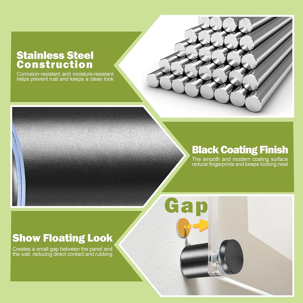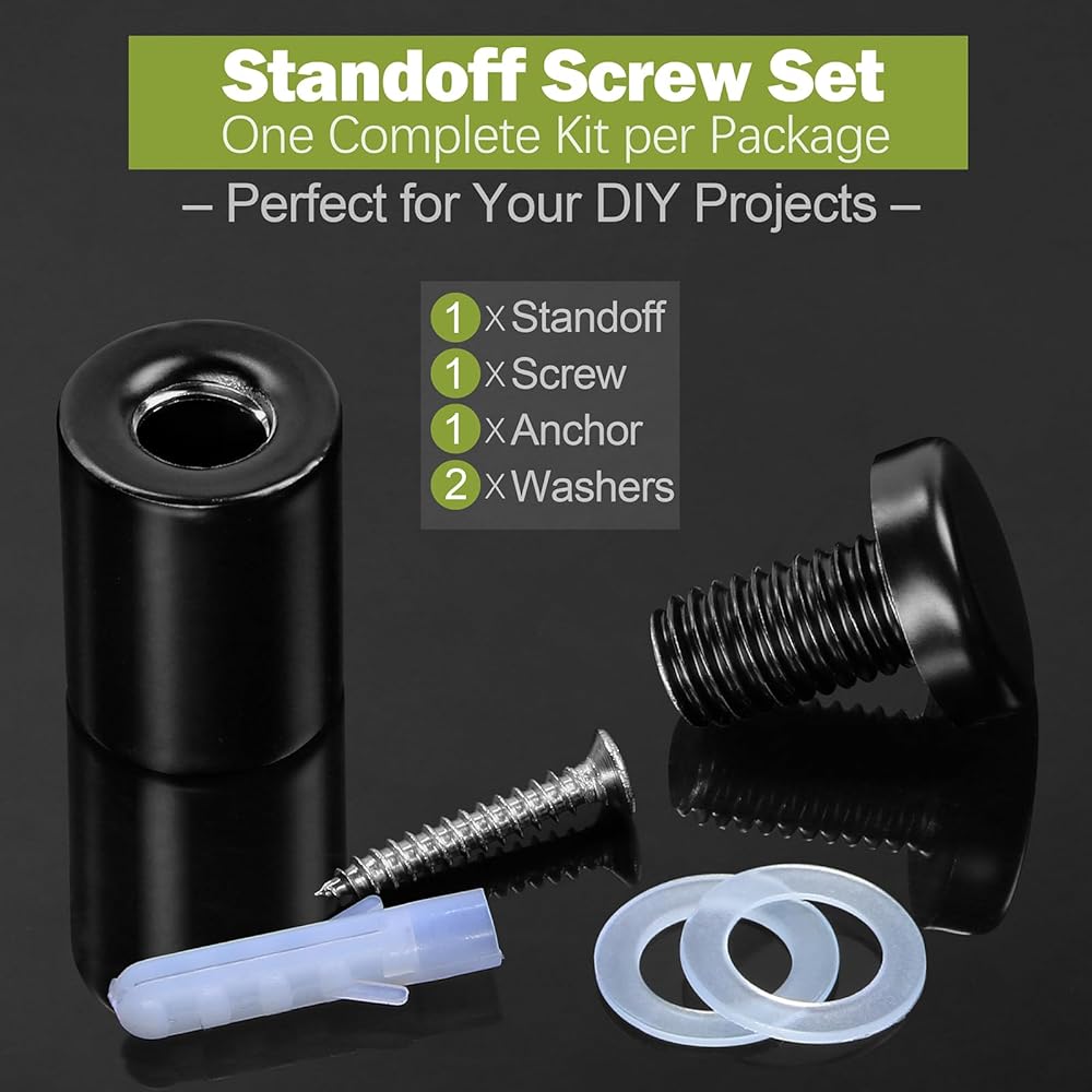 *Stainless Steel Construction - Made of stainless steel for reliable strength and long-term fastening performance. The Black finish delivers a clean professional appearance, making these standoff screws a practical choice for sign mounting, panel fixing, and decorative hardware applications.