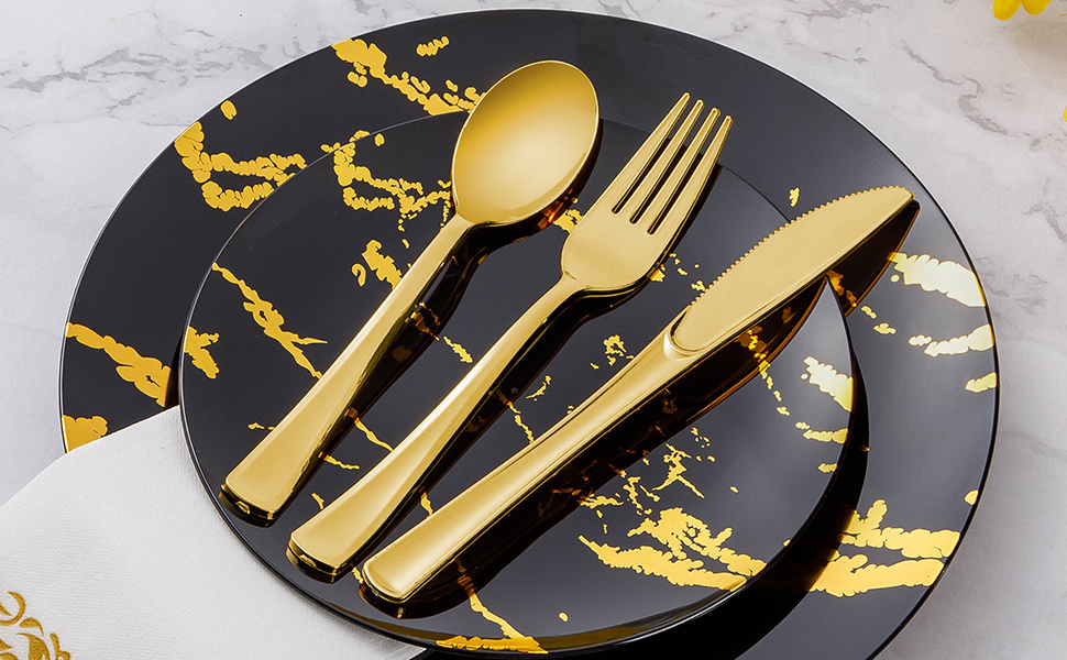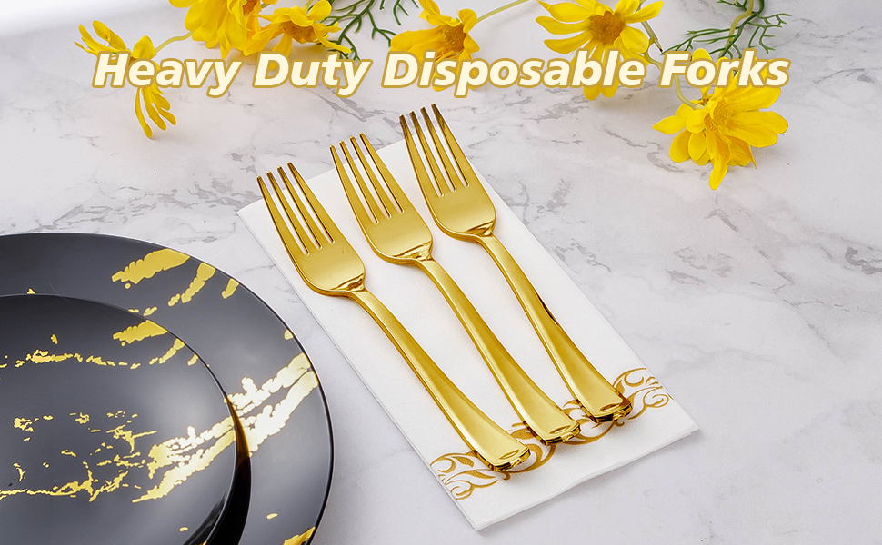 IDEAL FOR PARTIES - With this gold plastic forks only, you can easily host a party without worrying about the cleanup. You can throw them in the trash after use. These gold plastic cutlery are great for weddings, holidays, baby showers, business parties, Thanksgiving, Halloween, and Christmas dinners.