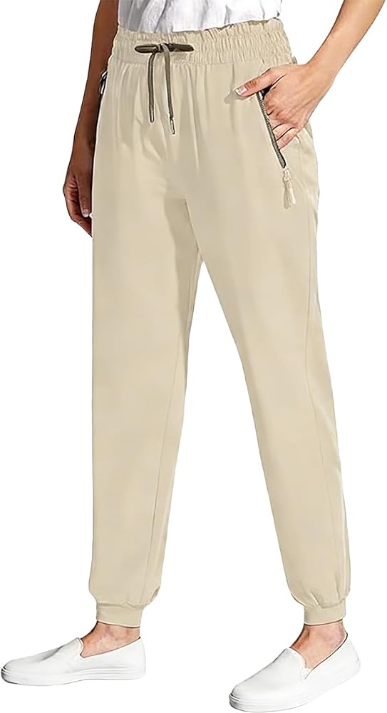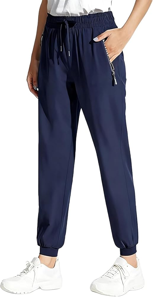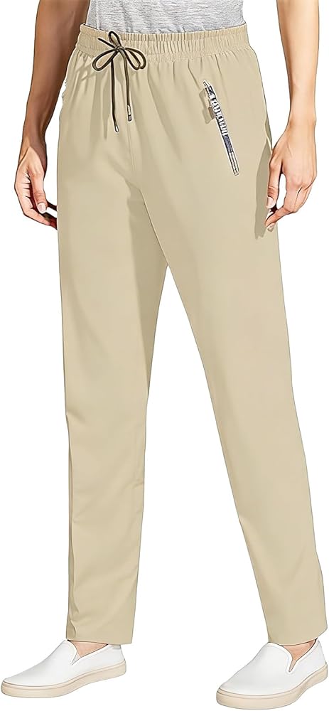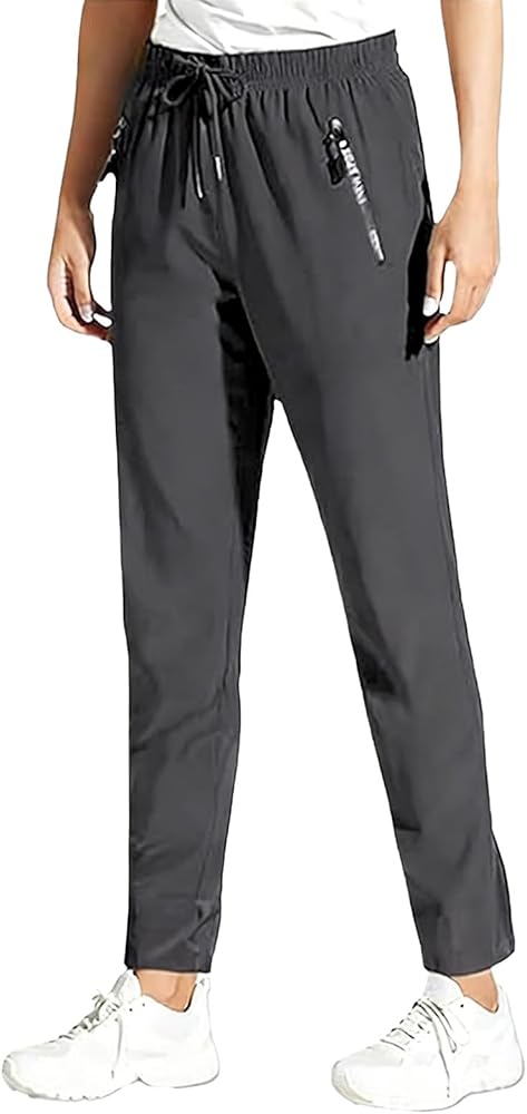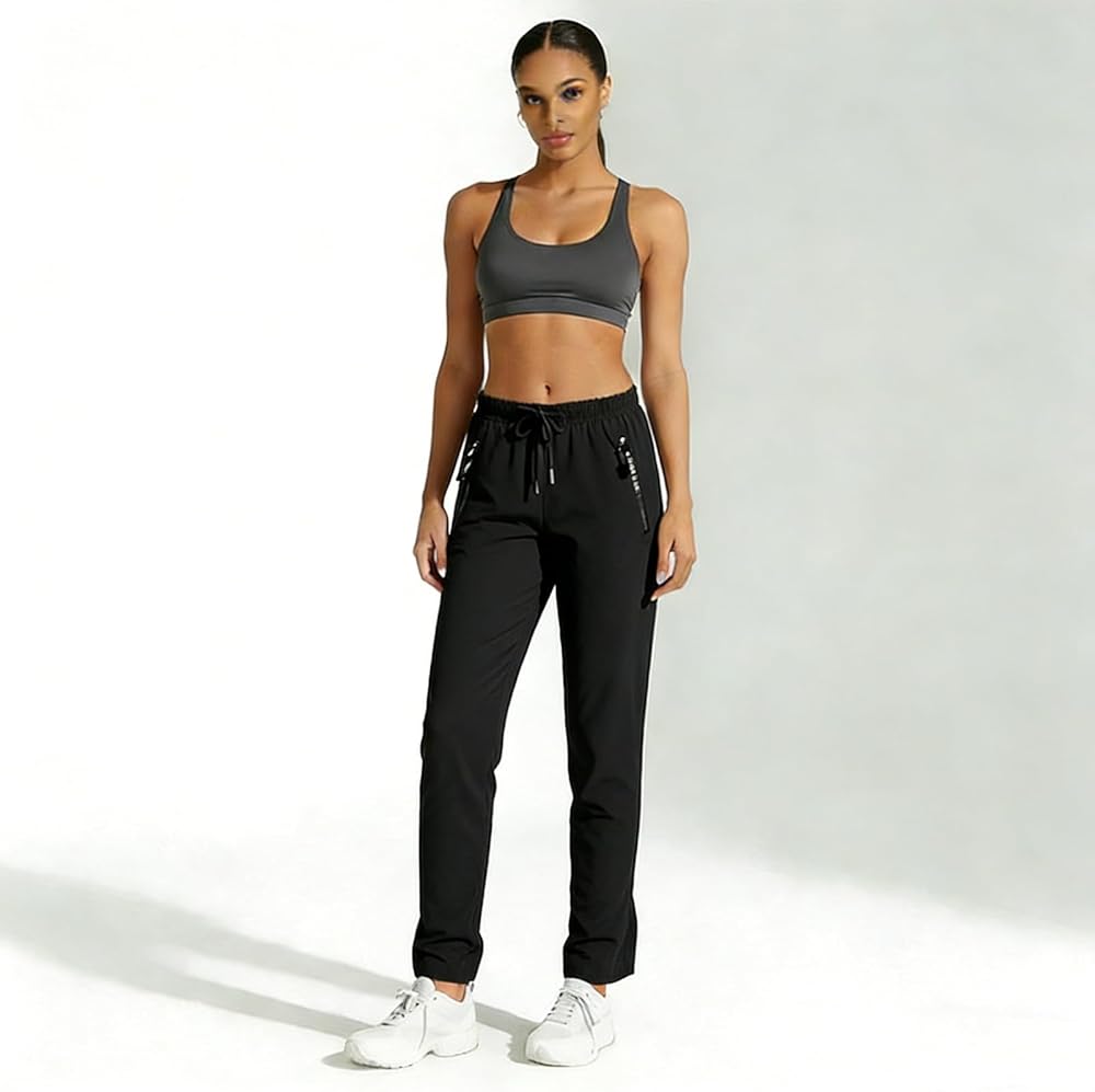 Adjustable Drawstring Waist & Deep Zipper Pockets: Tailor your fit with the elastic drawstring waistband of our Stretch Quick Drying Pants with Pockets, which adjusts easily for training, errands, or flights. The deep zippered pockets securely hold your essentials, accommodating up to a 6.5" phone for worry-free movement.
