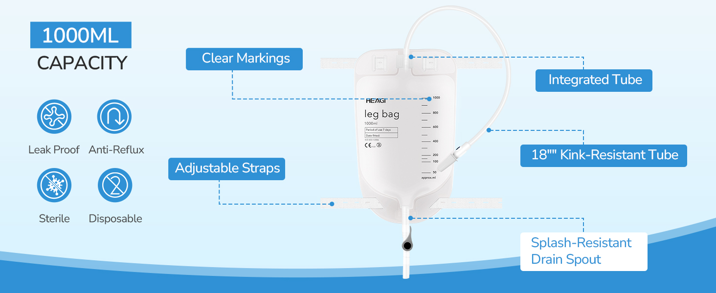Reliable Urinary Drainage – Each 33.8 Oz urinary drainage bag provides secure, long-lasting performance for daily activities or nighttime use