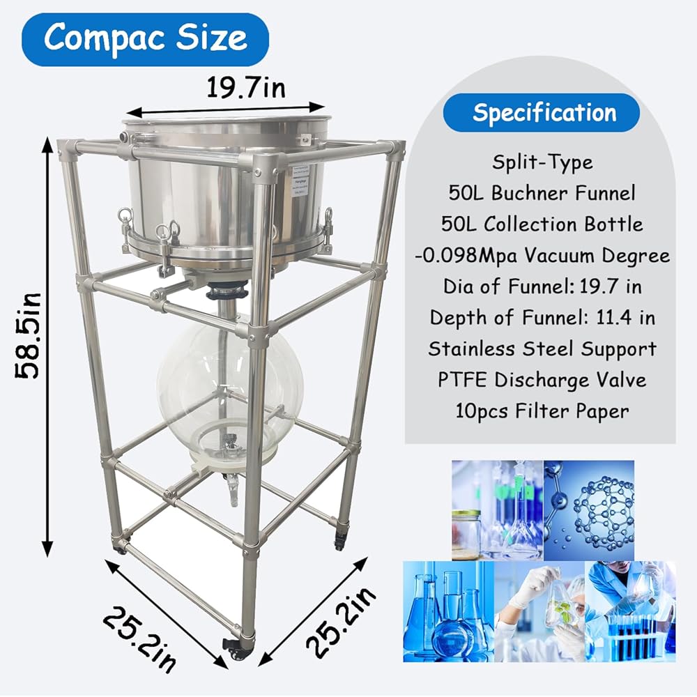 1set 50L Split-Type Vacuum Filtration System with 304 Stainless Steel Buchner Funnel