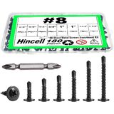 180pcs #8 Sheet Metal Screws Assortment Kit,Hincell 410 Stainless Steel Self Tapping Screws for Metal,Self Drilling Screw, 6 Sizes (1/2", 5/8", 3/4", 1", 1-1/4", 1-1/2") -Black