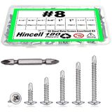 ⛟⛟⛟Hincell 180Pcs Self Drilling Screws Assortment Kit, 410 Stainless Steel Metal Sheet Screws,TEK Screws,Self Tapping Screws, 6 Sizes (#8x1/2", 5/8", 3/4", 1", 1-1/4", 1-1/2")