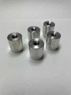 Precision-engineered M8 x 1.25 threaded standoffs, machined from premium 6061 billet aluminum. These versatile spacers feature a 0.800-inch outer diameter and 0.900-inch length, making them ideal for various mounting applications. The weld-on design provides a permanent, secure attachment solution. Each package includes 5 standoffs manufactured by Wenteq in the United States. These robust aluminum spacers offer excellent strength-to-weight ratio and corrosion resistance inherent to 6061 aluminum. The M8 x 1.25 metric threading ensures compatibility with standard M8 fasteners, while the billet construction guarantees consistent quality and dimensional accuracy. Perfect for custom fabrication projects, machinery mounting, and industrial applications where precise spacing and secure attachment are crucial. The clean, professional finish and precise machining make these standoffs an excellent choice for both functional and aesthetic requirements in your assembly needs.