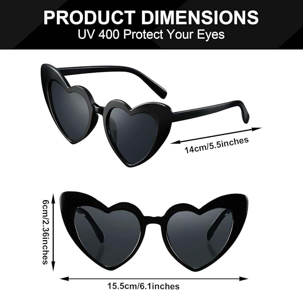 Package includes: 9 pairs of heart shaped sunglasses are enough for your daily wear, you can also share with your good friends and family members