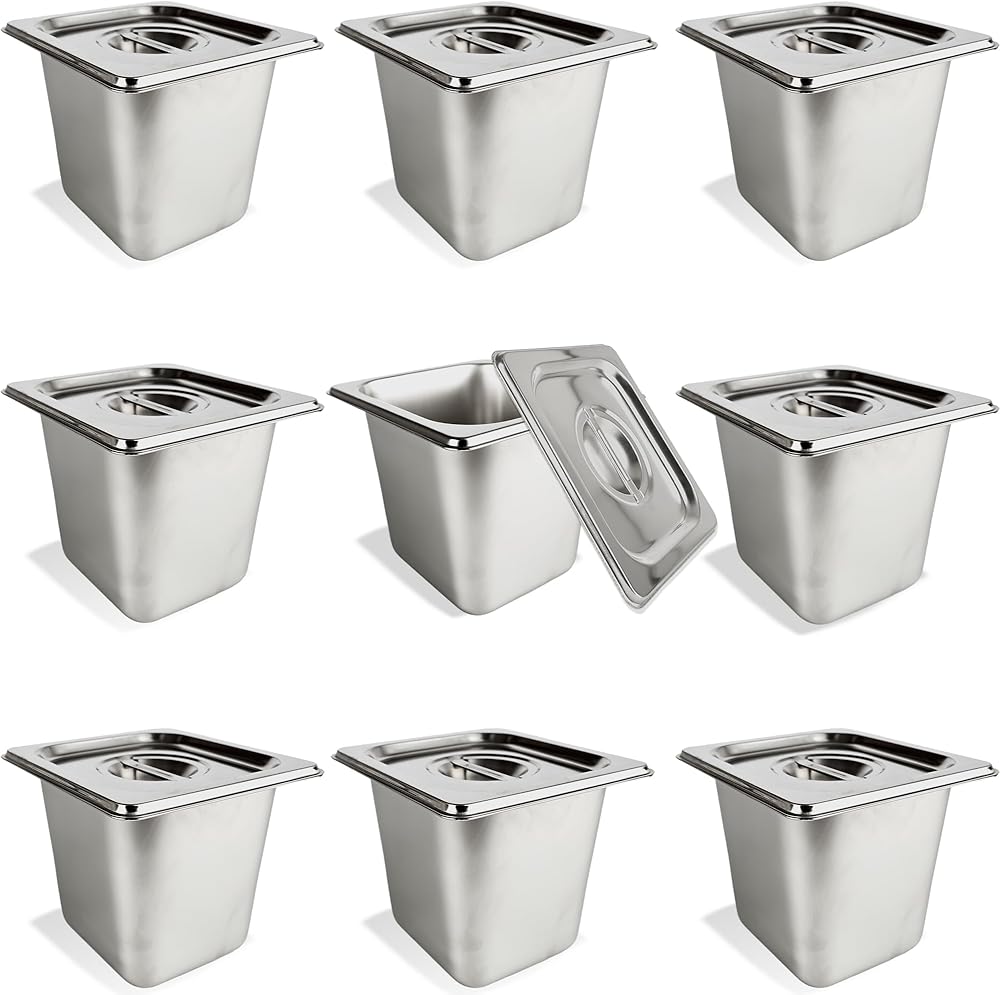 9 Pcs 1/6 Size 6 Inch Deep Restaurant Hotel Pan with Lids Stainless Steel Steam Table Pan Commercial Catering Metal Food Trays Warming Pans for Food Hotel Buffet