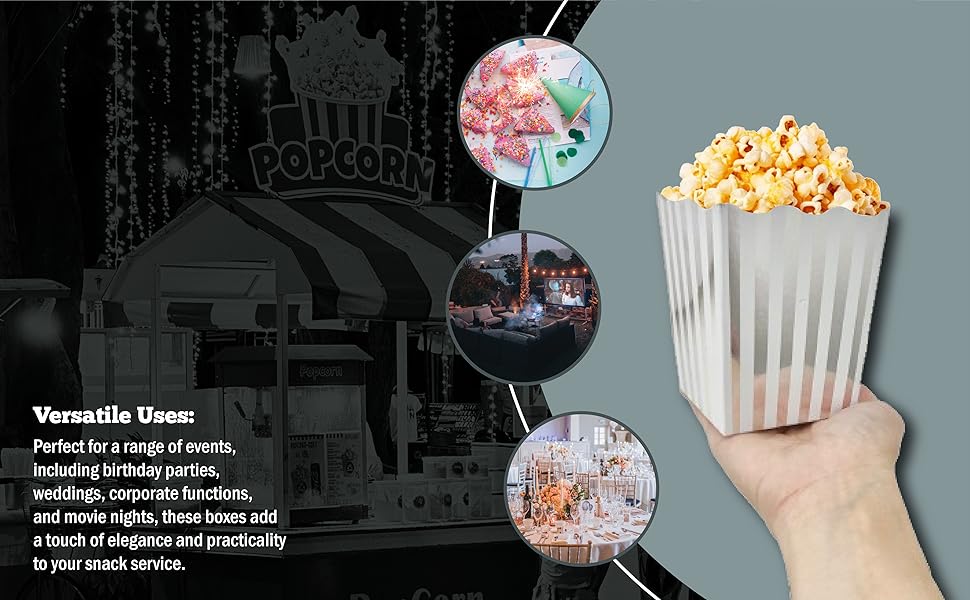 🥂🎉 Versatile Usage: Perfect for a range of events, including birthday parties, weddings, corporate functions, and movie nights, these boxes add a touch of elegance and practicality to your snack service.