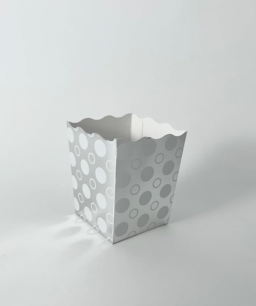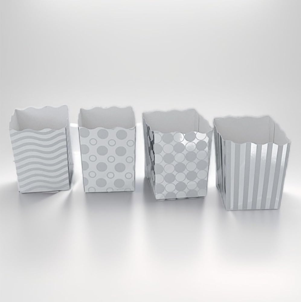 48 Pack Mini Silver Popcorn box with design –Disposable Popcorn Boxes 4 Inches tall Paper Popcorn Container for Parties, Weddings, Anniversary, Christmas, New Years, Other