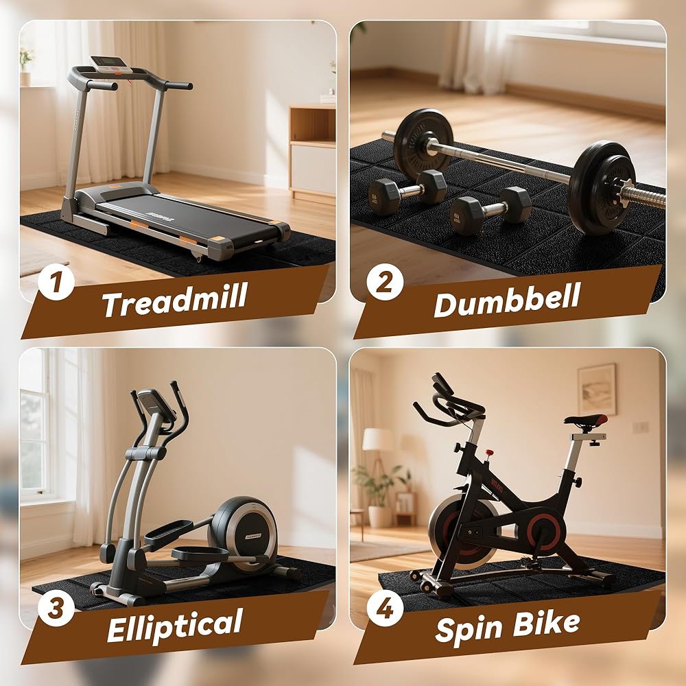 𝐖𝐈𝐃𝐄 𝐀𝐏𝐏𝐋𝐈𝐂𝐀𝐓𝐈𝐎𝐍𝐒: This exercise mat can be used as a protective mat for flooring and fitness equipment. It also features a foldable and waterproof and sweatproof design, and can also be used as a yoga exercise mat for aerobic training. Perfectly fits most equipment.elliptical, treadmill, bench, dumbbell, bike, etc