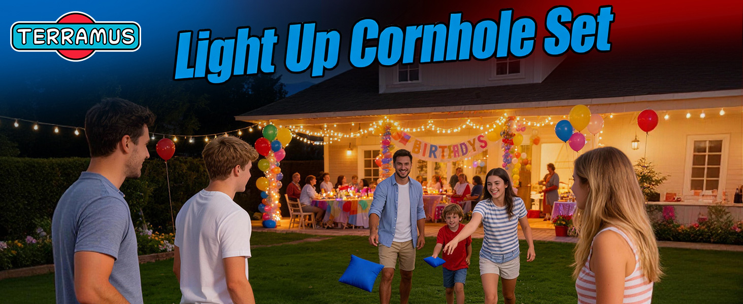 【Fun for the Whole Family】Play cornhole game any time of the day or night with TERRAMUS Light-Up Bean Bag Toss. Team up or go head-to-head in friendly nighttime outdoor competition. Perfect outdoor toss game that delights kids, teens and adults—no age limits, just pure fun!