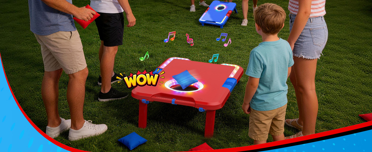 【Interactive Light & Sound Feedback】Say goodbye to silent gameplay, the responsive audio feedback system of TERRAMUS Beanbag Game Set cheers you on with exciting sound effects that celebrate every score! Paired with vivid running rainbow light show, the lively audio-visual feedback creates a immersive festive atmosphere, making every game session feel like a party.(Sound can be turned ON/OFF independently)