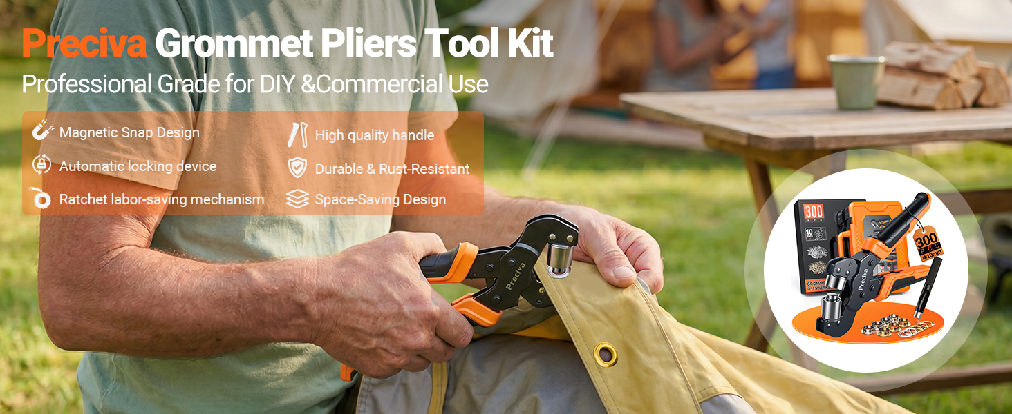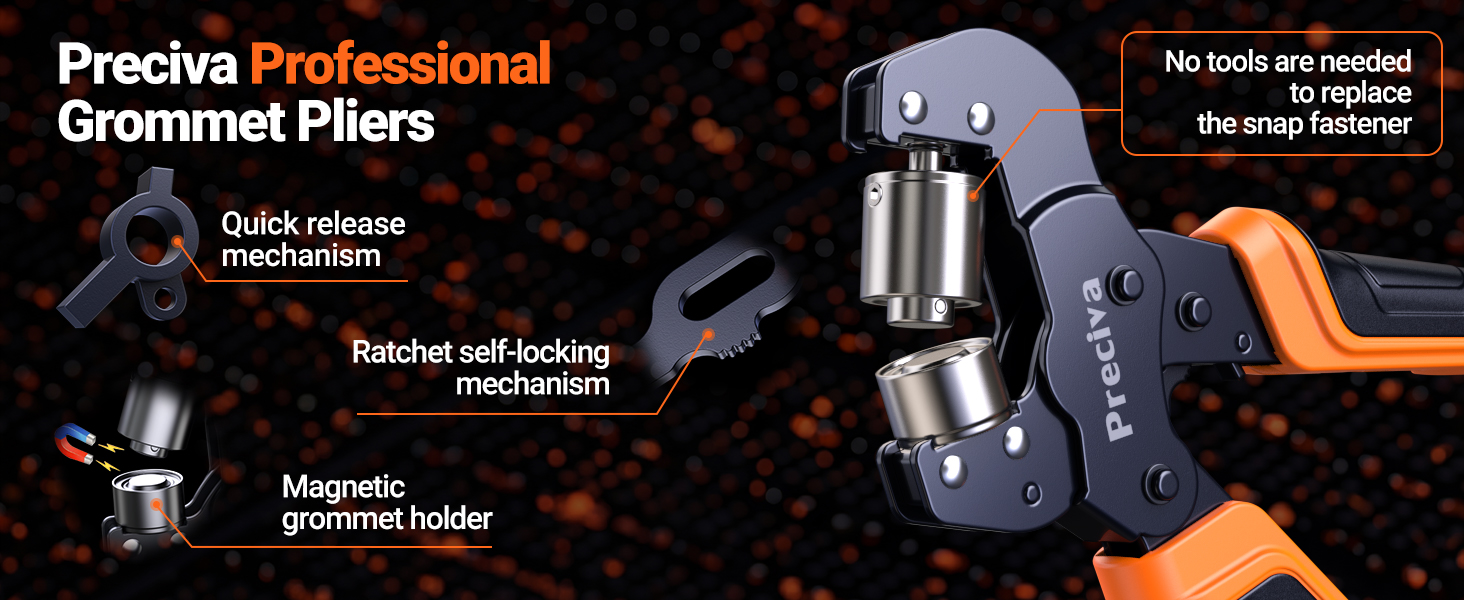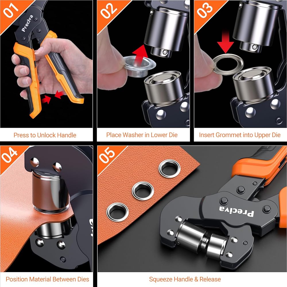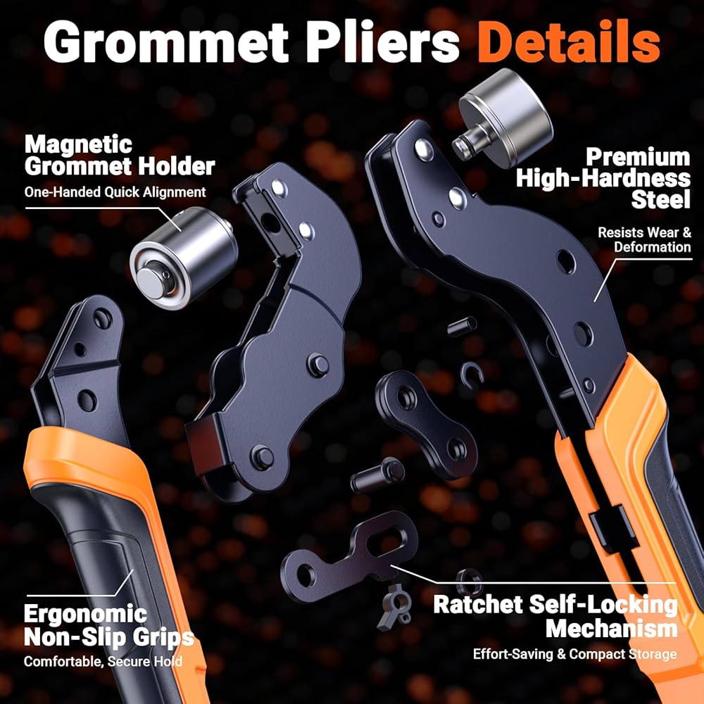 【Effortless Ratchet Action Reduces Hand Fatigue】The integrated ratchet mechanism multiplies your hand force, allowing you to set grommets with minimal effort—perfect for long craft sessions or bulk production. The self-locking feature keeps the tool compact when not in use, ideal for cramped workshops. This grommet tool ensures you can complete large banner orders or multiple upholstery repairs without hand cramps, making it a favorite among busy professionals.