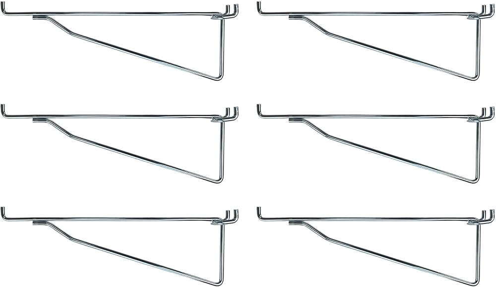 (6 Pack) 12 Inch Mega All Metal Peg Hook Shelf Brackets for 1/8" or 1/4" Pegboard & Slatwall