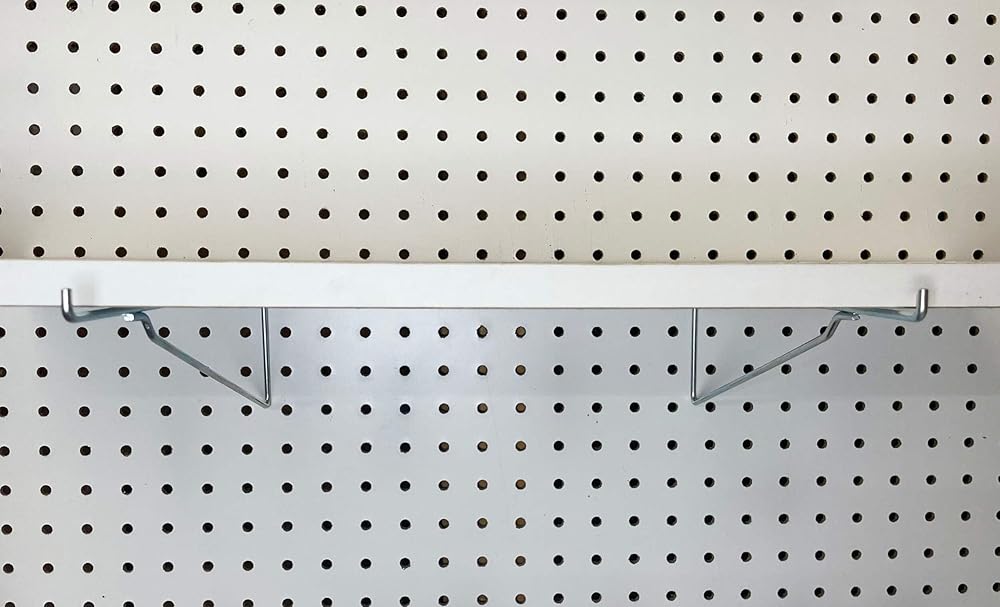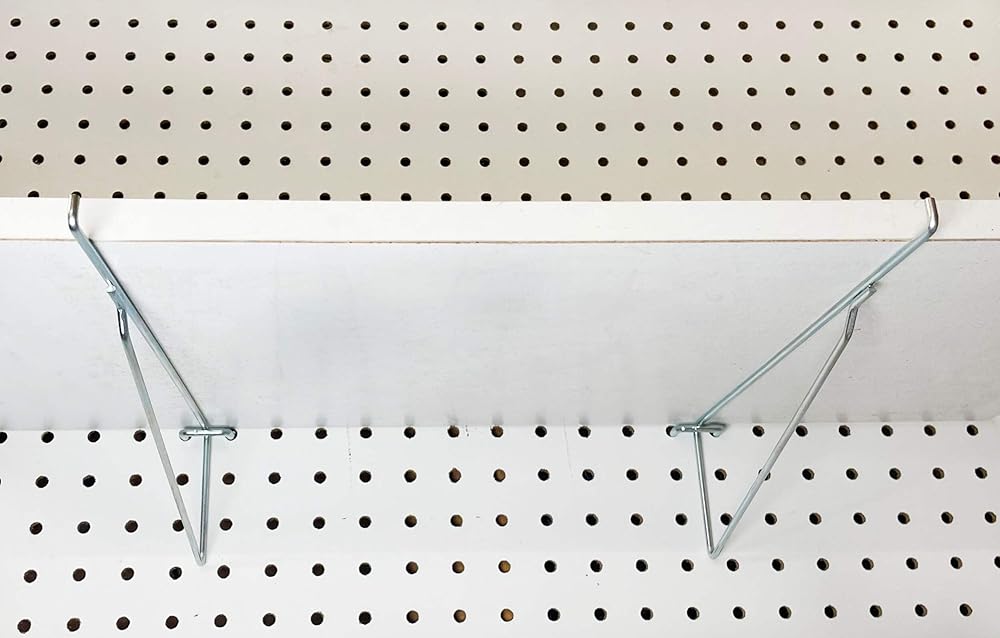 A high quality Very durable pegboard shelf bracket built to last. Fits 1/8 and 1/4 Inch Pegboard and most slatwalls.