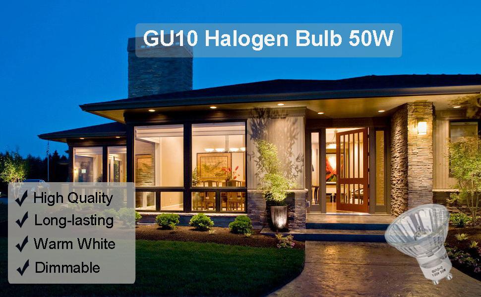 1,【Long Lasting Lifetime】: 6 pack mr16 gu10 halogen, made of high-quality tungsten filaments, enjoy 3000 hours long lasting life, these gu10+c 120v 50w can switch on and off about 8000 times, saving you the cost of frequent bulb replacement.