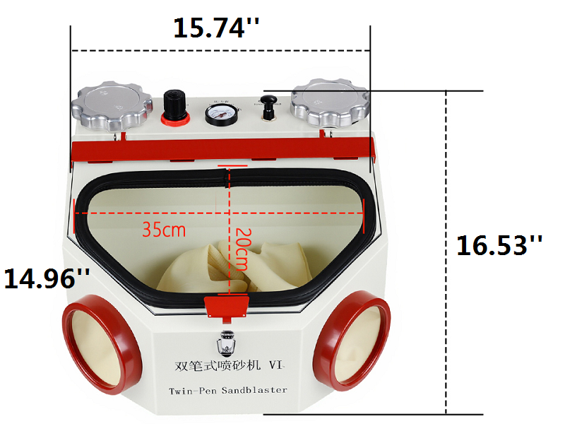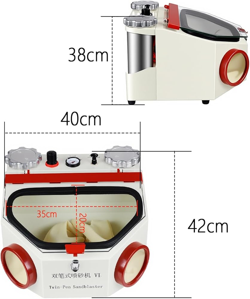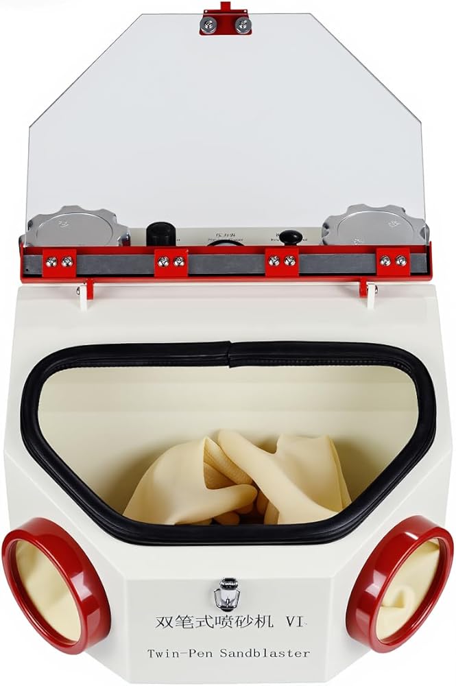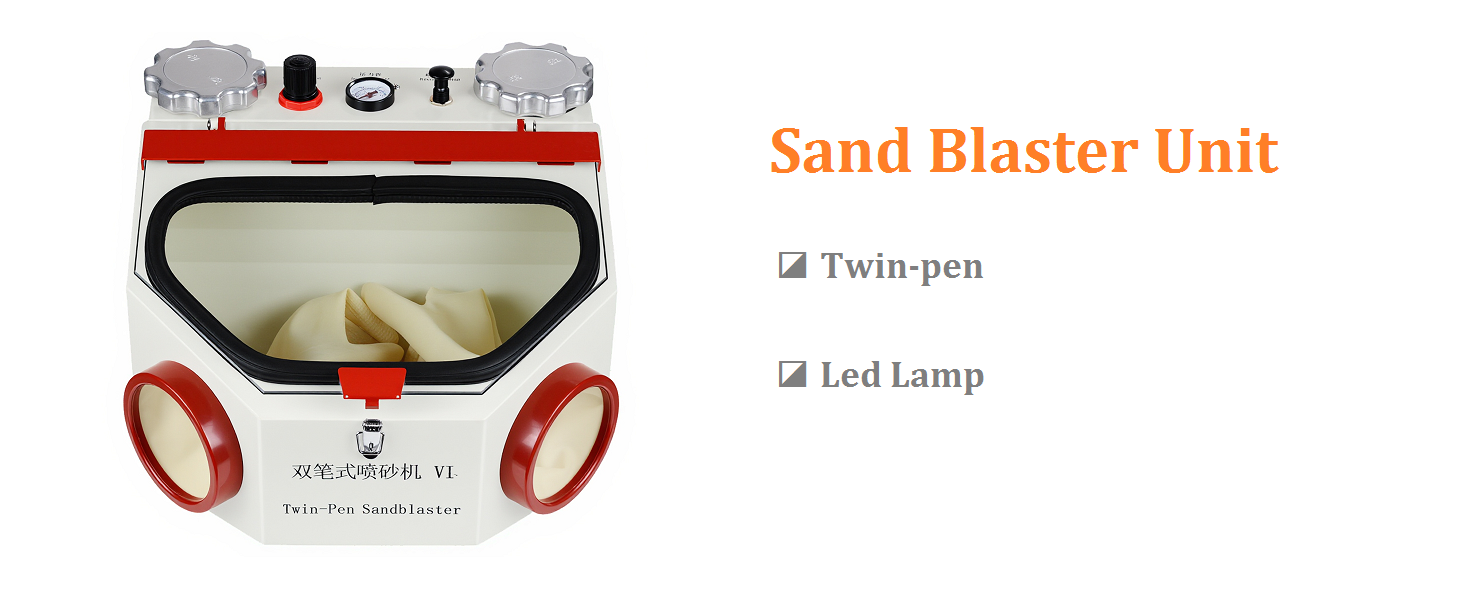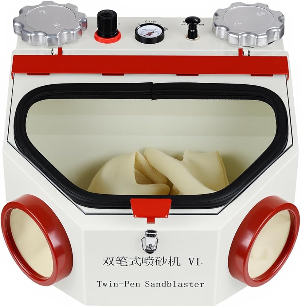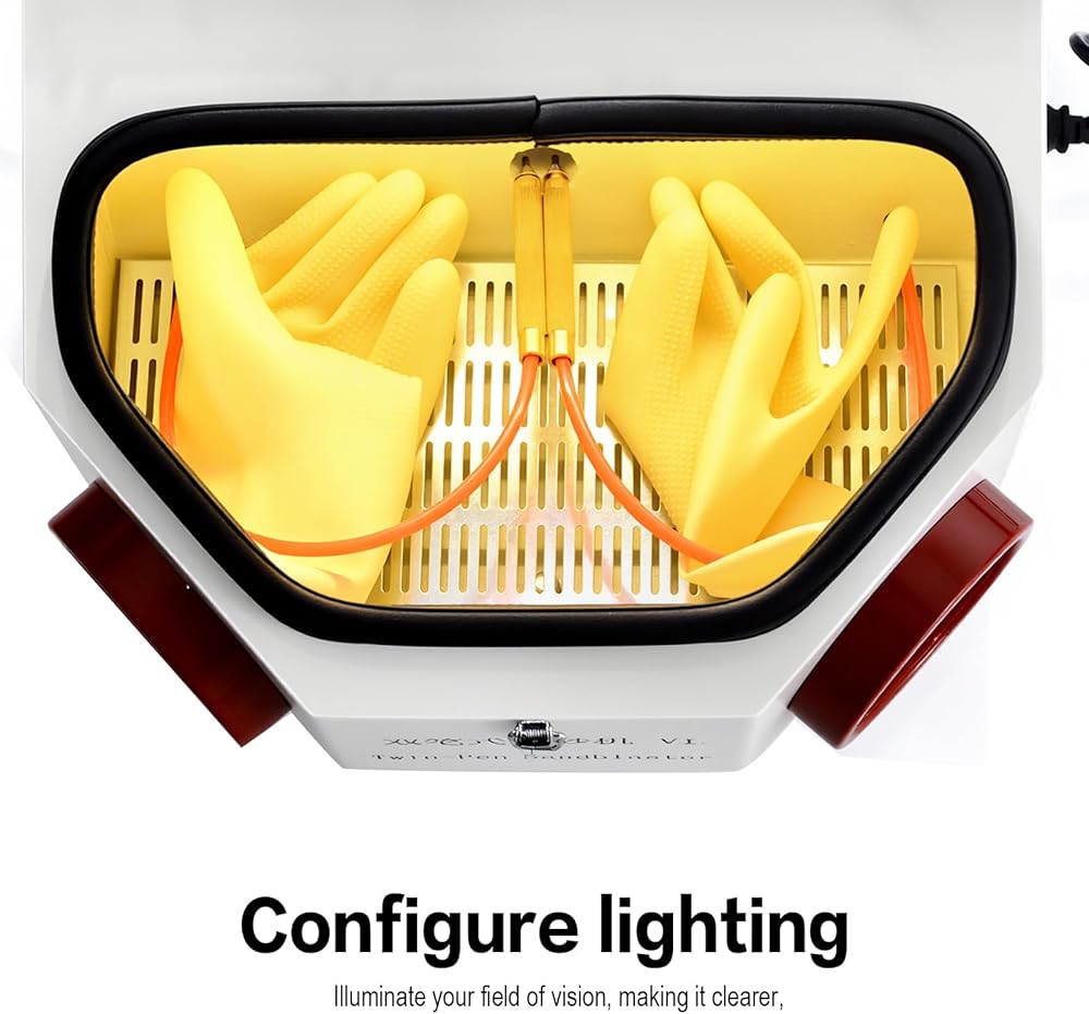 Sandblaster Double Pen Sand Blasting Machine Large View WindowLED Lamp with 2 Iron Cups