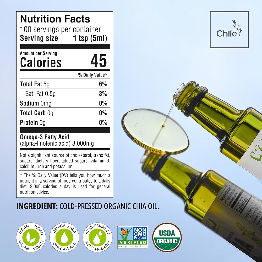 100% PURE ORGANIC CHIA SEED OIL - First Cold Pressed, Unrefined, Non GMO