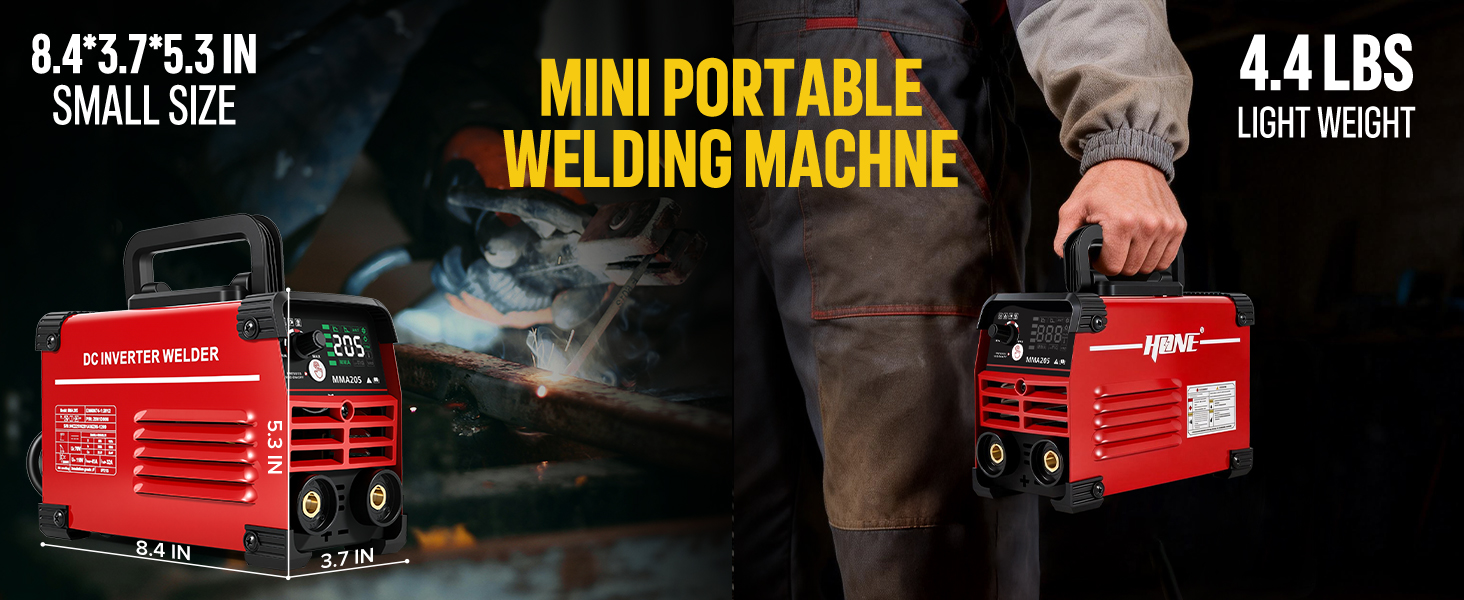 【𝐂𝐨𝐦𝐩𝐚𝐜𝐭 𝐚𝐧𝐝 𝐋𝐢𝐠𝐡𝐭𝐰𝐞𝐢𝐠𝐡𝐭 𝐃𝐞𝐬𝐢𝐠𝐧】This small welder has unique compact design, the dimension: 8.4"x 3.7"x 5.3", weight is only 4.4lbs. You can take this arc welder easily to wherever you need to work, whether working outdoors, indoors or at height, and that it is small, doesn't occupy the space of your truck, garrage.